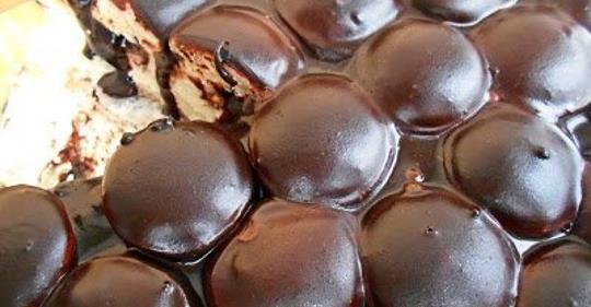 6. Po tym czasie, polej ciasto na całej powierzchni polewą czekoladową, a kiedy zastygnie – ciasto jest gotowe!