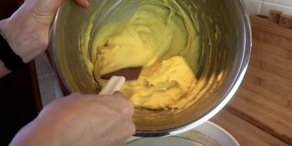 4. Do schłodzonej masy budyniowej, dodaj miękkie masło i ubij mikserem na gładki krem.