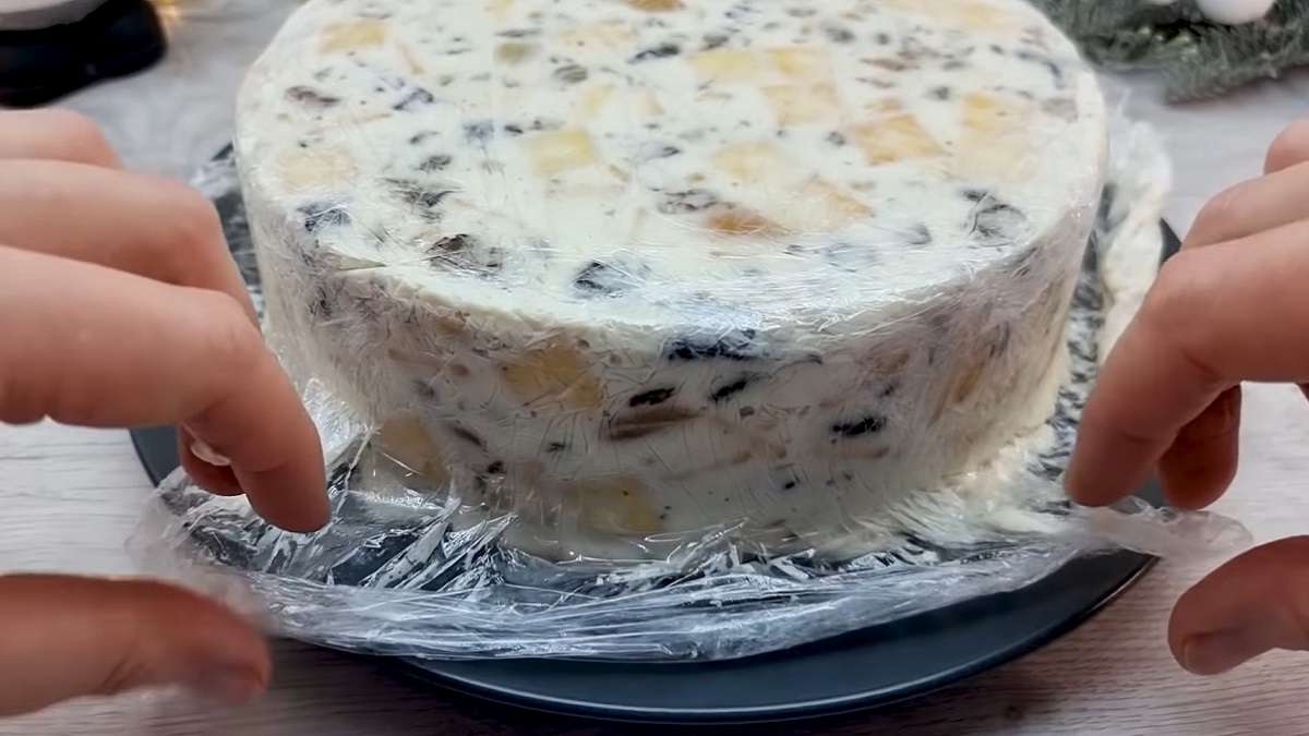 Dobrze będzie jak przekryjesz je deską z dodatkowym ciężarem. Wstaw wszystko do lodówki i trzymaj w niej ciasto jeden dzień, po czym wyłóż delikatnie na talerz.