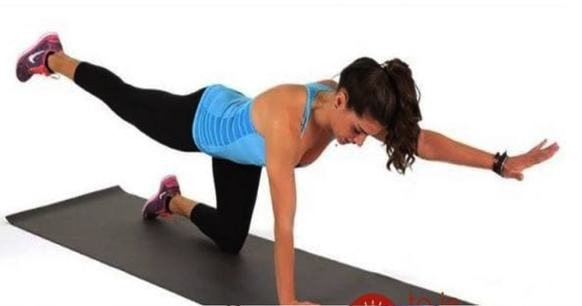Pozostań w tej pozycji przez około 5 sekund, a potem wróć powoli do klęku podpartego. Powtórz ćwiczenie, używając drugiej nogi. Wykonaj 15 powtórzeń ćwiczenia z użyciem każdej nogi.