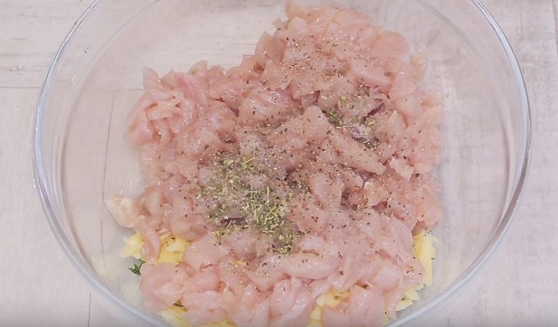 3. Teraz, wymieszaj składniki: Do posiekanego mięsa, dodaj drobno posiekany świeży koperek, jajka, majonez, mąkę i ser żółty. Dopraw do smaku solą, pieprzem i wstaw do lodówki na 2 godziny.