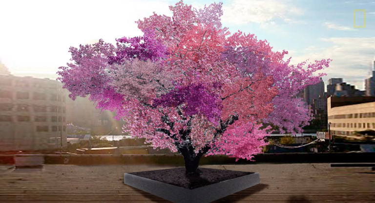 ”Zaczęło się od projektu artystycznego. Chciałem, aby ludzie mieli wrażenie, że drzewo kwitnie w różnych kolorach, a owoce narastają na siebie.” – tłumaczy Aken