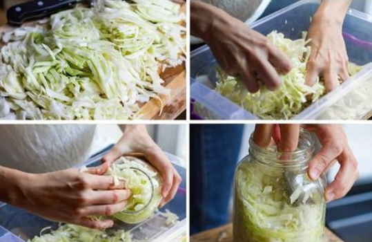 6. Codziennie należy kilka razy kapustę dociskać za pomocą drewnianego tłuczka, wałka lub czystej dłoni oraz przebijać do dna za pomocą długiego końca drewnianej łyżki albo pałeczką do sushi, po to aby odgazować ją, dzięki temu kapusta nie będzie gorzka i nie zepsuje się.