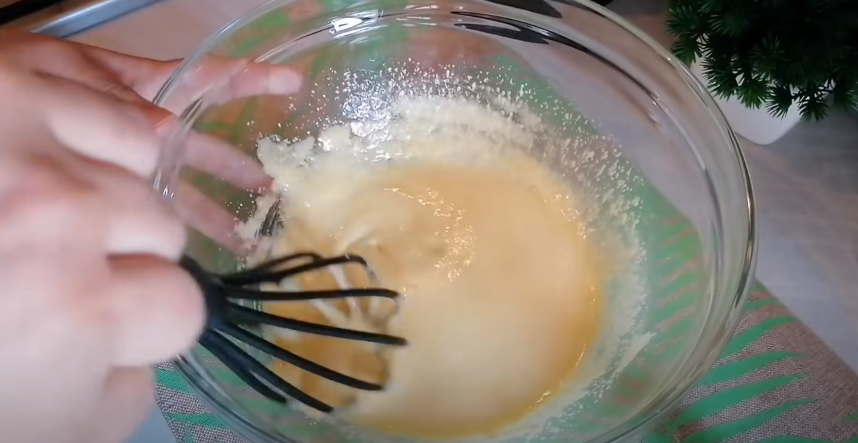 1. W misce, utrzyj żółtka z cukrem. Następnie, dodaj roztopione masło i wymieszaj.