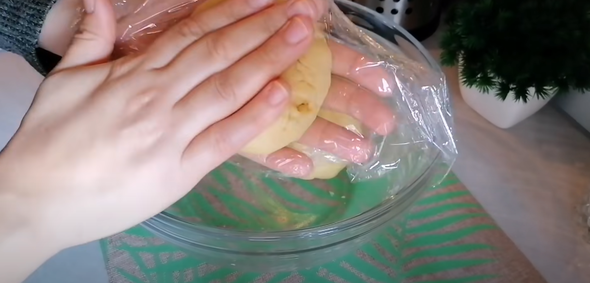 3. Gotowe ciasto, podziel na 2 części i każdą zawiń w folię spożywczą. Wstaw do zamrażarki na 30 minut.