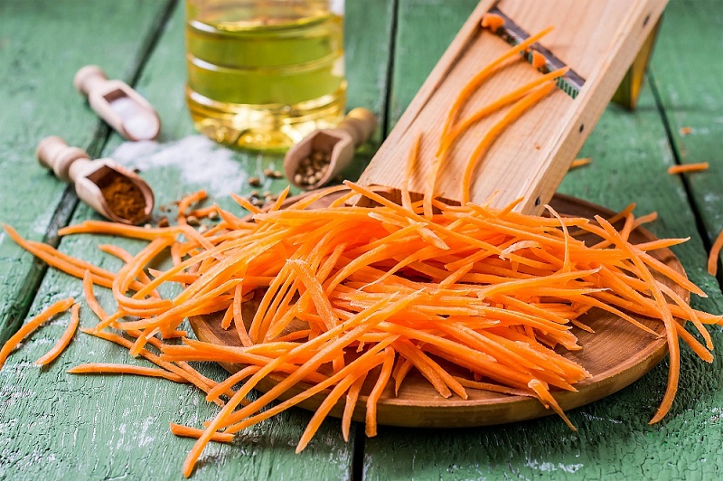 Zaopatrz się tylko w specjalną tarkę warzywną, która pozwoli Ci zetrzeć marchew na długie i cienkie paski lub słupki (im dłuższe – tym lepsze). Cała reszta, to już banalnie prosta czynność z którą poradzi sobie nawet najmniej doświadczona Pani domu. Aby mieć ją zawsze pod ręką, gotową marchewkę przechowuj w zamkniętym pojemniczku w lodówce. Do dzieła!