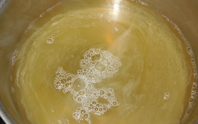 1. W garnku, zagotuj wodę z cukrem i solą (zamiast cukru, możesz dodać 300 g miodu). Gdy składniki połączą się ze sobą, a cukier rozpuści – odstaw do wystygnięcia.