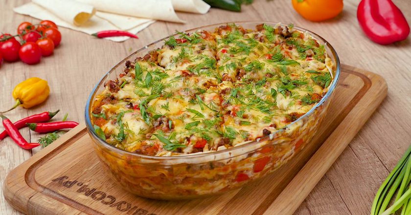 Mięsno-ziołowa zapiekanka z tortillą – Ekspresowe i sycące danie, które smakiem zachwyci każdego.