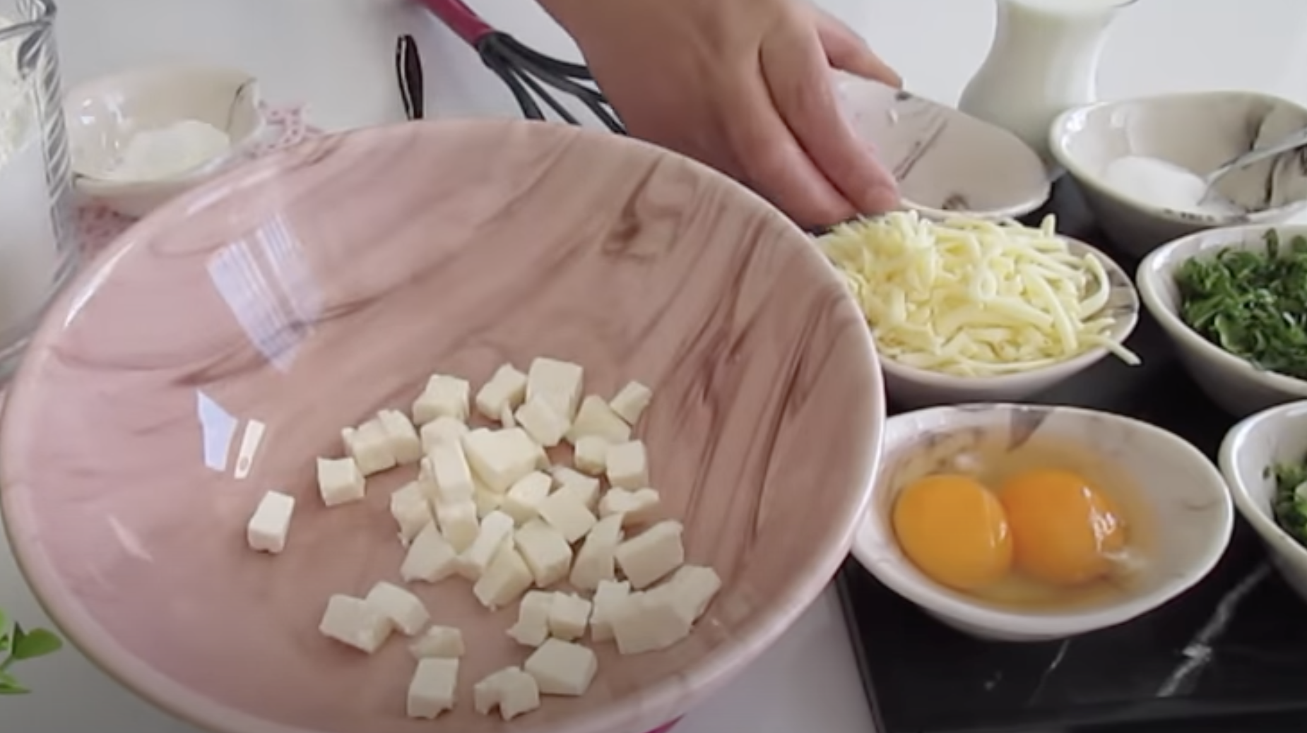 1. Pokrój ser bałkański na mniejsze kawałki, a następnie rozgnieć go widelcem.