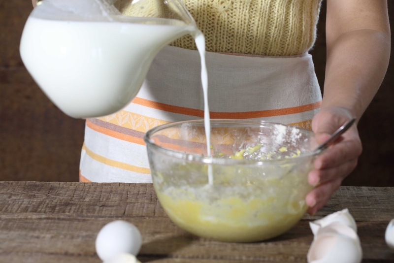 3. Potem dodaj mleko i olej. Mieszaj do czasu, aż uzyska konsystencję gęstej śmietany.