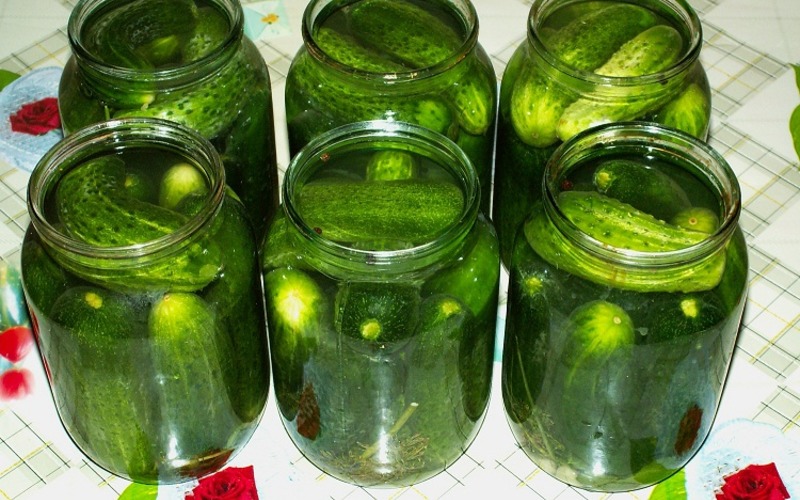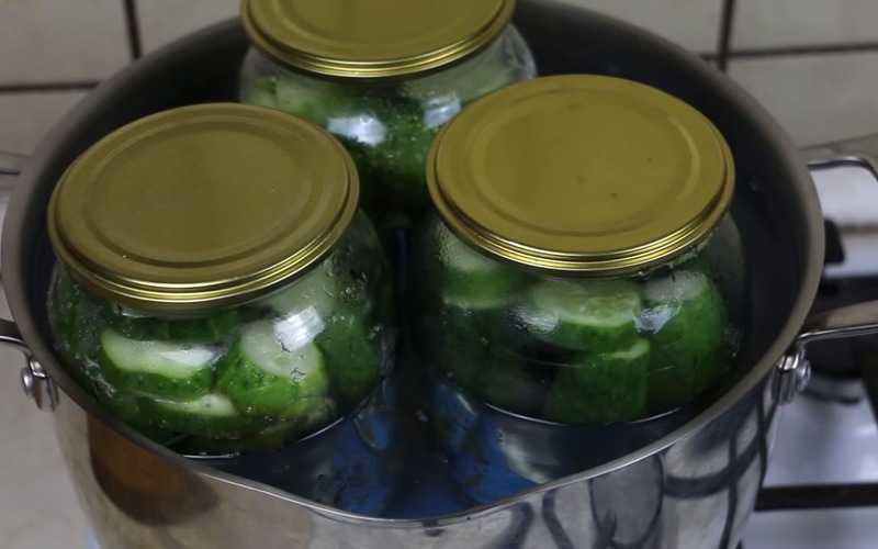 3. Czas na zalewę: W garnku, zagotuj wodę z cukrem, solą i octem. Następnie zalej gorącą zalewą ogórki w słoikach i zakręć szczelnie pokrywkami. Słoiki pasteryzuj przez 5 minut od czasu, aż woda zacznie wrzeć.