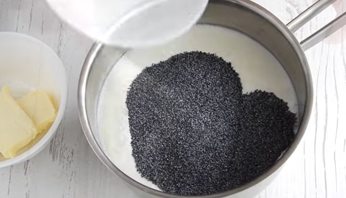Schłodzone mleko wymieszaj z makiem, masłem i cukrem. Najlepiej użyj w tym celu trzepaczki. Następnie postaw garnek z taką zawartością na średnim ogniu.