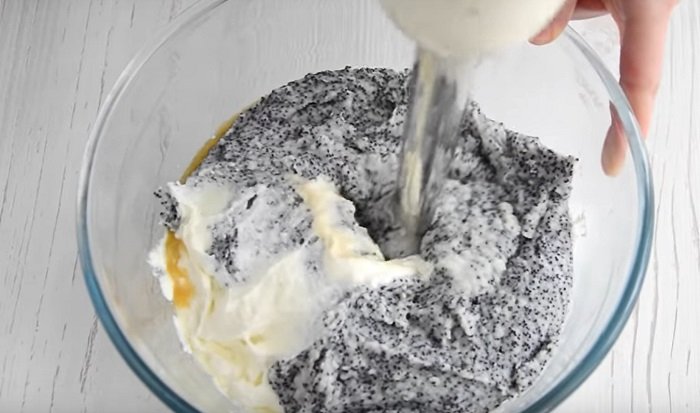 Twarożek połącz z jajkiem w osobnym naczyniu i dopraw szczyptą soli. Wymieszaj. Użyj w tym celu blendera aby uzyskać jednolitą, gładką masę. Dodaj nasiona maku i ponownie wymieszaj blenderem by konsystencja była gładka.