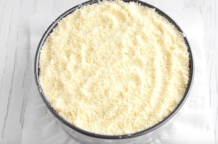 Posyp z wierzchu pozostałą częścią ciasta, równomiernie. Piekarnik rozgrzej do temperatury 180 stopni. Gdy będzie już odpowiednio nagrzany włóż ciasto i piecz około 45 – 50 minut, zależnie od piekarnika.