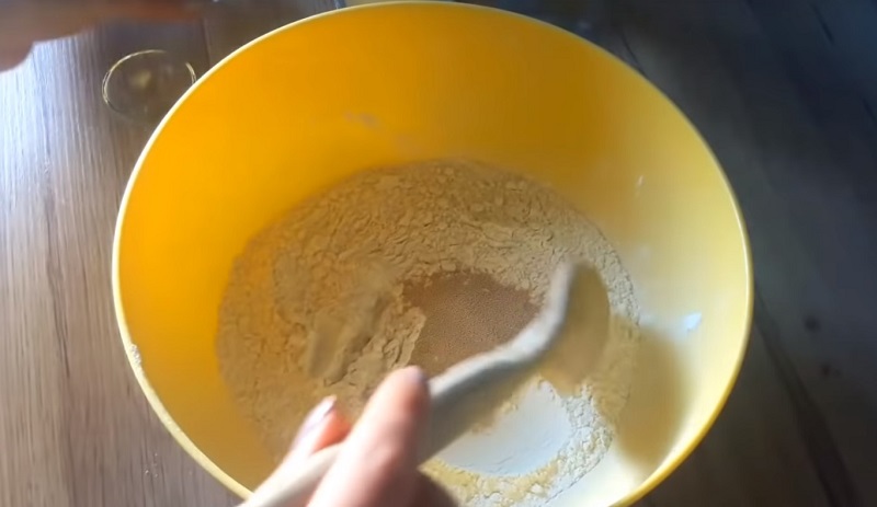 1. Przesianą mąkę, wymieszaj z solą i drożdżami. Potem, stopniowo dodawaj wodę i mieszaj najpierw łyżką a następnie rękoma, zagnieć gładkie ciasto.
