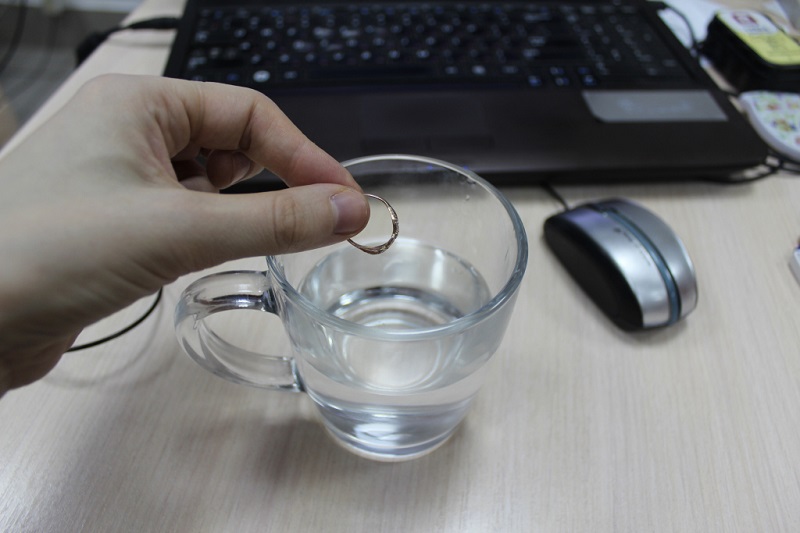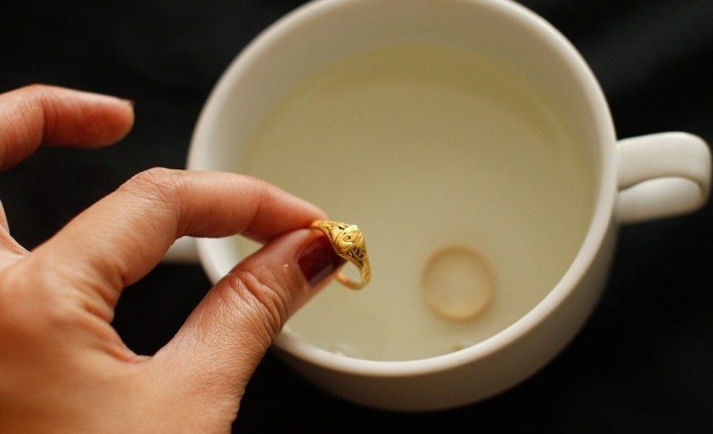 Ocet. Jest to jeden z najłatwiejszych sposobów: wystarczy przetrzeć złoto octem, a następnie opłukać i wysuszyć.