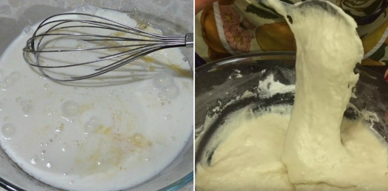 1. W głębokiej misce, wymieszaj kefir z mąką, sodą oczyszczoną, olejem i solą. Ciasto powinno być gęste i delikatne, ale nie aż takie żeby trzeba było je zagniatać.