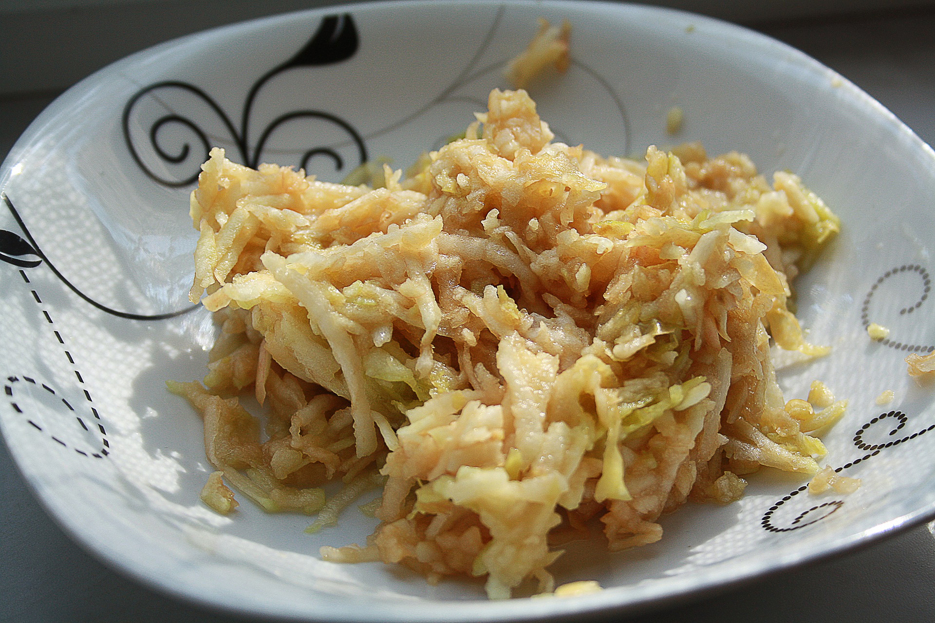 3. Rękoma wyrób ciasto. Ugniataj przez około 10 minut, następnie odłóż aby wyrosło. Teraz masz czas na przygotowanie nadzienia jabłkowego: na tarce zetrzyj jabłka, dodaj cynamon i cukier. Nadzienie z orzechów: gorącym mlekiem zalej orzechy, dodaj cukier. Nadzienie makowe zrób tak samo.