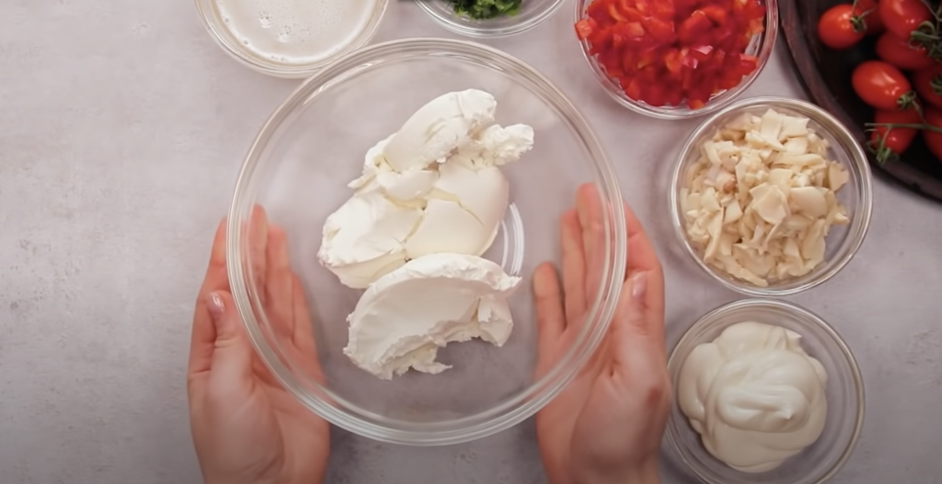 3. W miseczce, wymieszaj serek śmietankowy z majonezem.