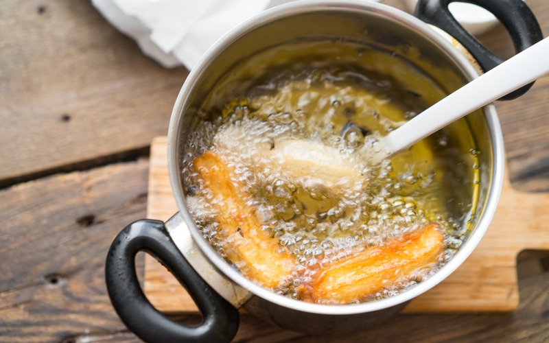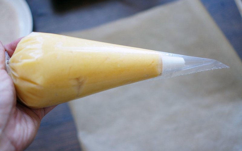 Ciasto przekładamy do rękawa cukierniczego. Równocześnie rozgrzewamy w garnku olej. Na gorący tłuszcz wyciskamy ciasto tworząc z niego 5-7 centymetrowe paluchy.