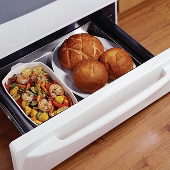 Tutaj możecie przeżyć niemałe zaskoczenie, ale nasza tajemnicza szuflada służy do…przechowywania w niej przygotowanych wcześniej potraw! Ogólnym zamysłem było podtrzymanie ich ciepła w trakcie przygotowywania kolejnych. Więc przykładowo możesz do niej włożyć ugotowane ziemniaki, gdy mięso musi się jeszcze dopiec. Tak czy inaczej idea nie przyjęła się wśród ludzi i praktycznie każdy używa tej magicznej szuflady do trzymania w niej zwykłych, kuchennych rzeczy.
