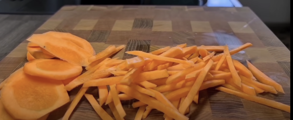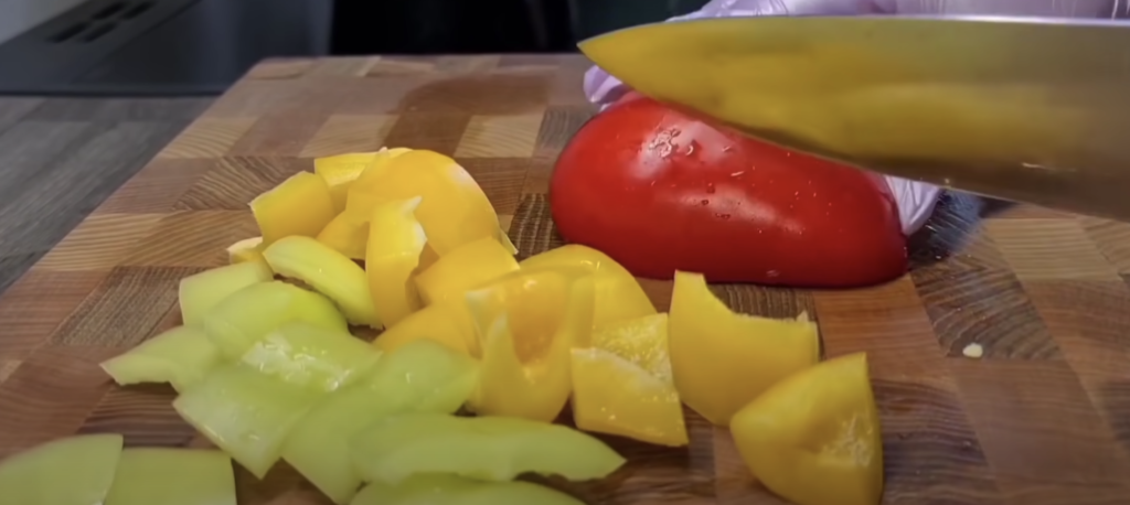 Paprykę ostrą pokrój na drobne kawałki, a paprykę słodką w paseczki. Użyj różnych kolorów papryk.