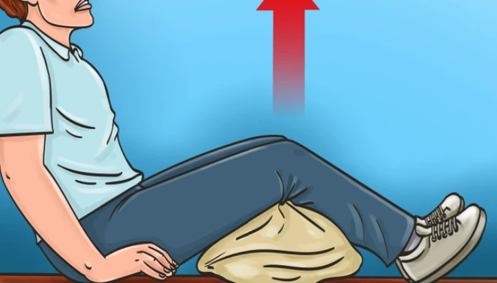 3. Usiądź w bezpiecznej pozycji – zgięte kolana, stopy na podłodze, plecy lekko oparte, kość ogonowa kilka centymetrów od ściany. Nie stój ani nie kładź się płasko.