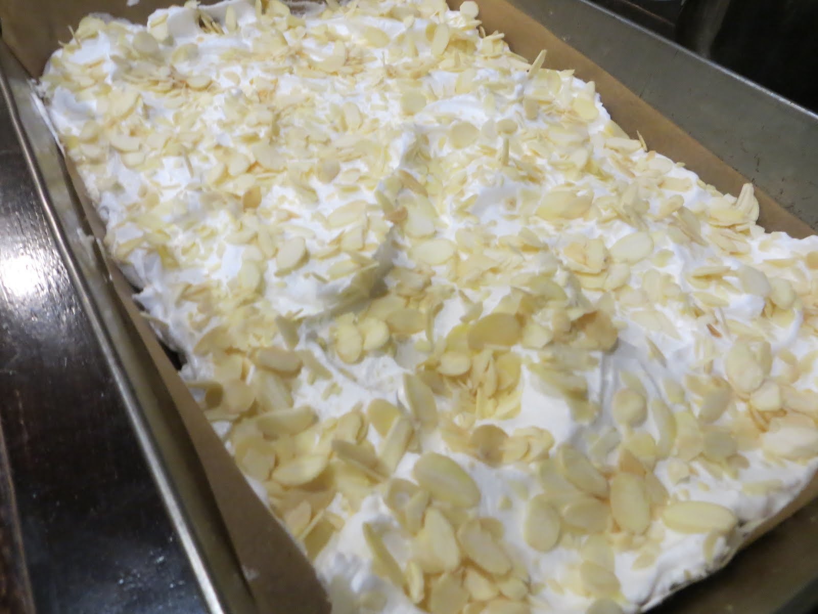 3. Piecz w piekarniku, rozgrzanym do 180°C, przez 30-35 minut. Pozwól mu całkowicie wystygnąć. W tym czasie, ubij białka jaj z cukrem pudrem na sztywną, białą pianę.